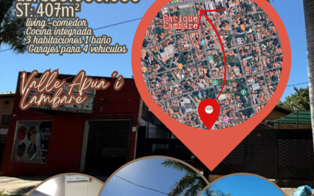 ¡¡VENDO CASA + TINGLADO EN LAMBARÉ B° APUA'I ! ¿Buscás el lugar perfecto para vivir y hacer crecer tu empresa? Esta propiedad en el Barrio Apua’i te ofrece versatilidad, espacio y una ubicación estratégica. ¡Dejá de pagar alquiler de galpones y mudate a lo propio!