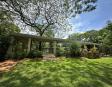 Amplio patio empastado y forestado que proporciona sombra natural y frescura.