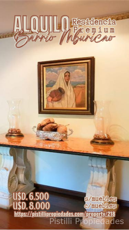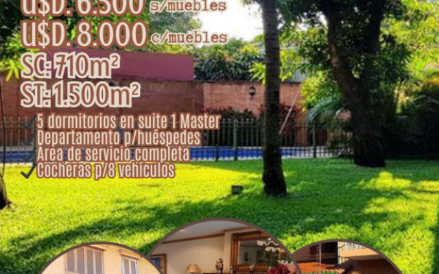LUJOSA RESIDENCIA AMOBLADA ZONA MBURUVICHA ROGA Estratégicamente ubicada en el exclusivo barrio de Mburicaó, a pasos de Mburuvicha Róga. una de las zonas más seguras y prestigiosas de Asunción, con acceso rápido a centros corporativos, embajadas, colegios y los mejores servicios. Cecilio Avila 3886
