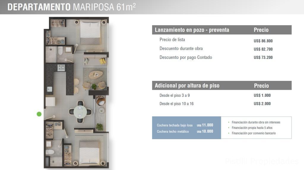 Departamento Mariposa 61m² ➡Desde U$D. 73.200