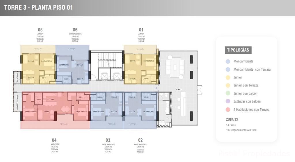 1 Habitación Junior 32m² ➡Desde U$D. 38.400
