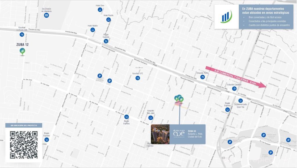 ✅ Pilares de la Inversión ZUBA: Ubicación Estratégica: Sobre la calle Roberto L. Petit, Ciudad del Este, a 500 mts. de la Avda. San Blás , asegurando una demanda constante de alquiler por parte de estudiantes y jóvenes profesionales. Conexión directa con las principales avenidas y puntos de interés de la ciudad. Rentabilidad Comprobada: El modelo ZUBA se basa en departamentos pequeños y funcionales (monoambientes y de 1 dormitorio), que garantizan una alta tasa de ocupación y un flujo de caja por arriendo en dólares (USD).Tipologías y Precios (Referencia de Proyectos Recientes):