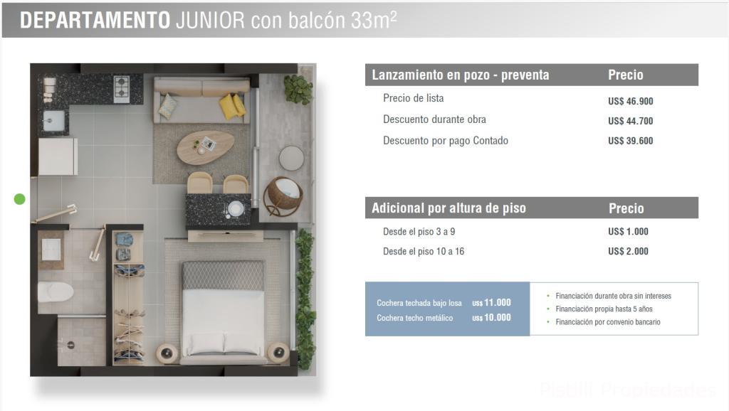 1 Habitación Junior c/balcón 33m² ➡Desde U$D. 39.600