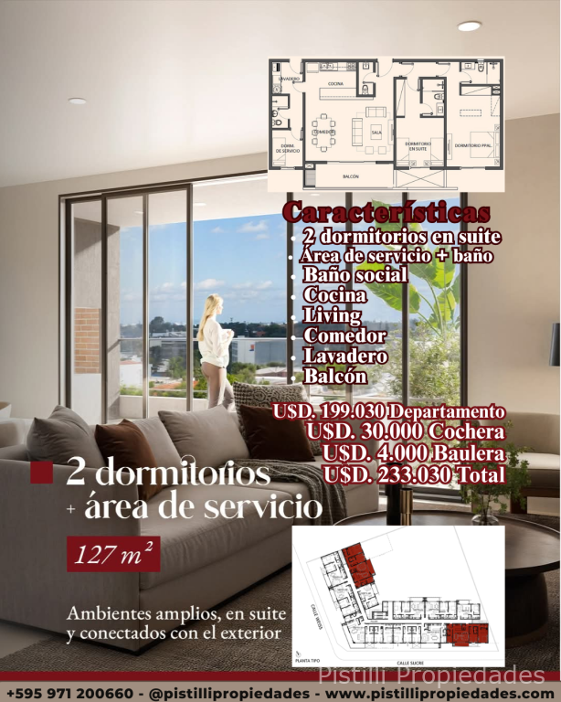 2 Dormitorios + Servicio127 m² U$D 199.030