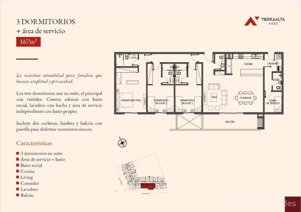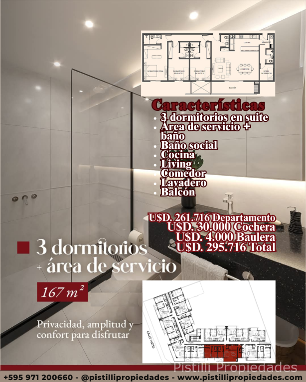 3 Dormitorios + Servicio167 m² U$D 261.716