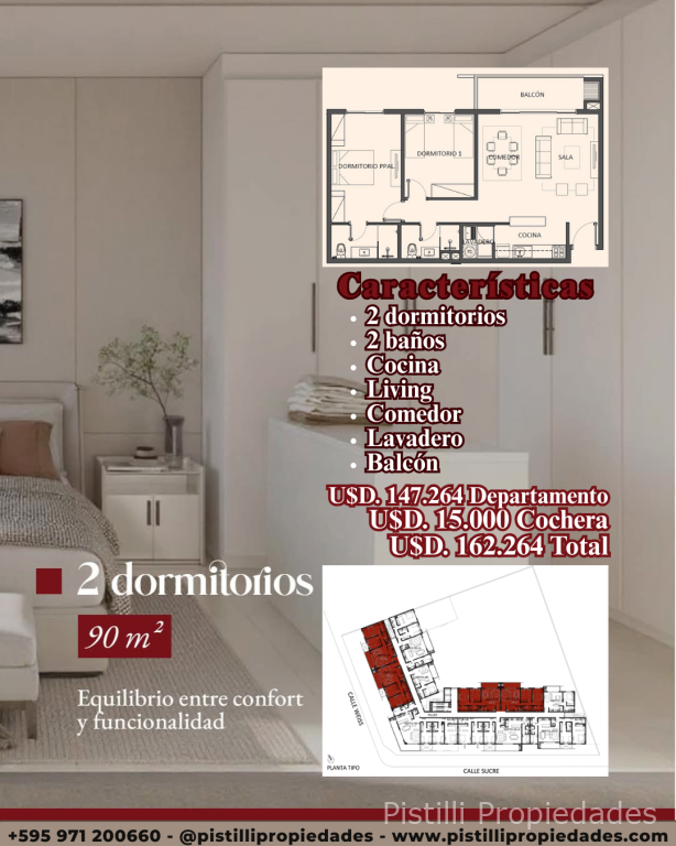 2 Dormitorios 90 m² U$D 147.264