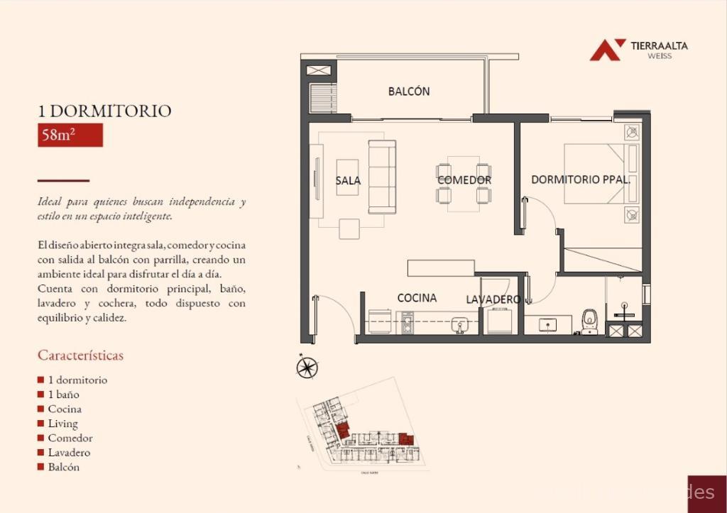1 Dormitorio 58 m² U$D 96.484