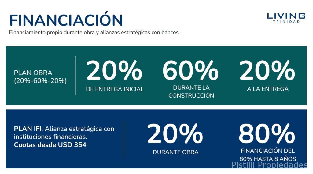 Plan Obra: 20% de entrega, 60% durante la obra y 20% contra entrega.
