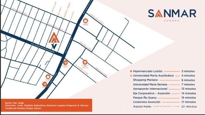 El edificio se encuentra a 4 minutos de la Universidad María Auxiliadora y a 15 minutos del eje corporativo de Asunción.