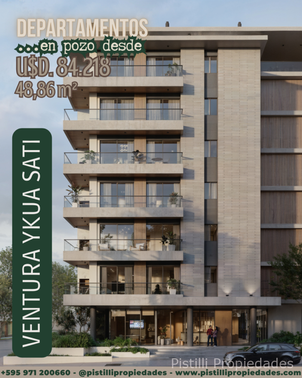 DEPARTAMENTOS EN POZO "VENTURA YKUA SATI" con una ubicación premium, enfocado en ofrecer una experiencia de vida en conexión con la naturaleza con espacios modernos y funcionales que buscan integrar la vida cotidiana con el entorno natural.