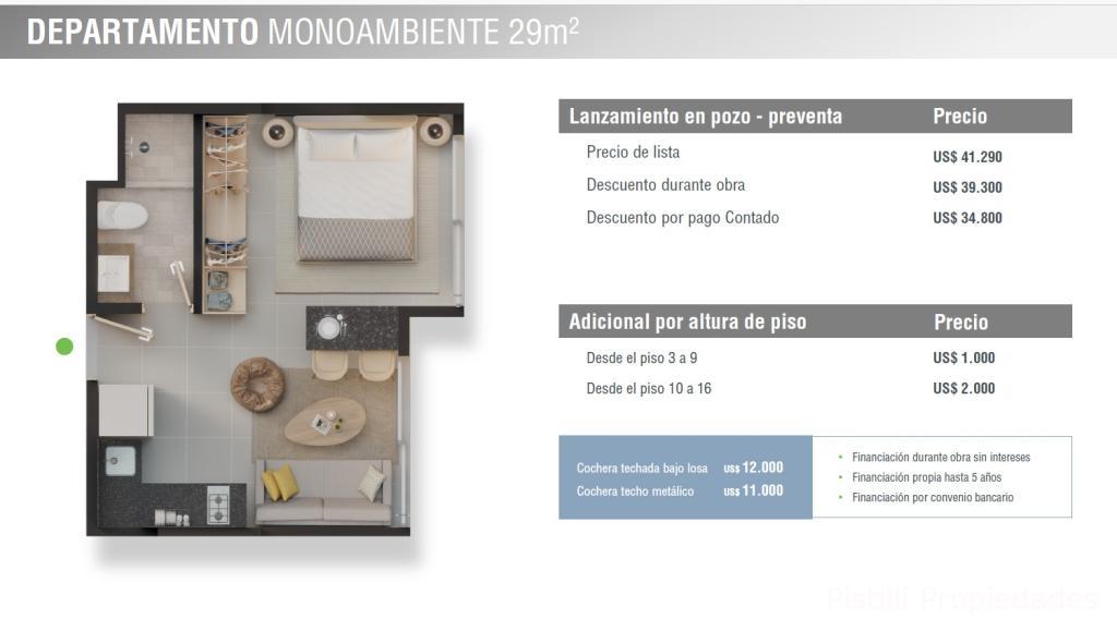 Monoambiente 29m² ➡Desde U$D. 34.800