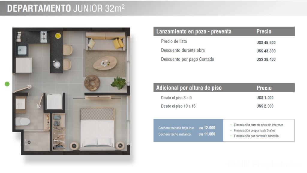 1 Habitación Junior 32m² ➡Desde U$D. 38.400