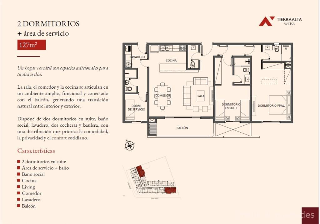 2 Dormitorios + Servicio127 m² U$D 199.030