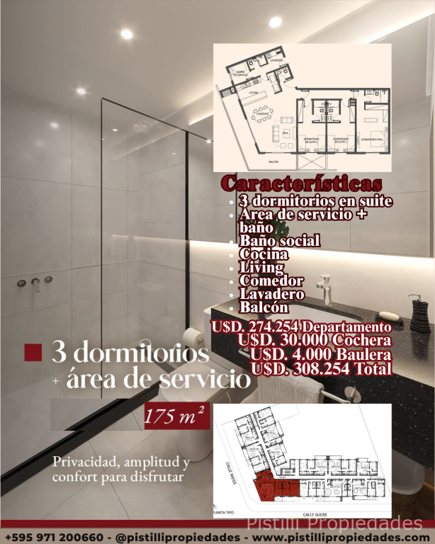 3 Dormitorios + Servicio167 m² U$D 261.716