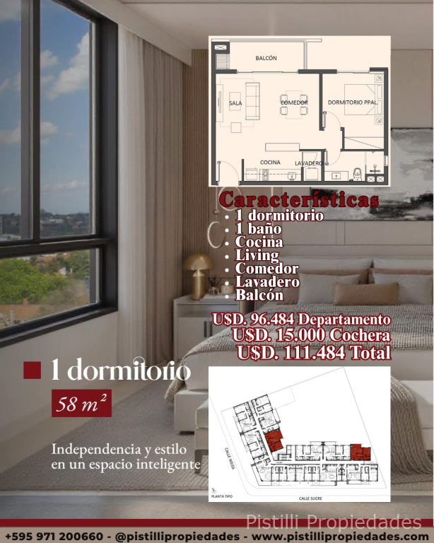 1 Dormitorio 58 m² U$D 96.484