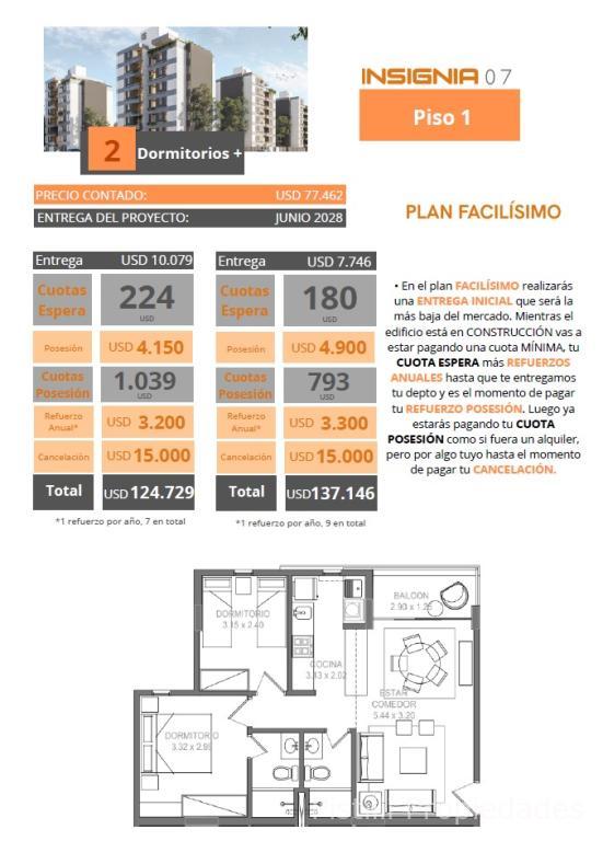 Financiación propia: Entrega 25% y plazos de 60, 90 y 120 meses.