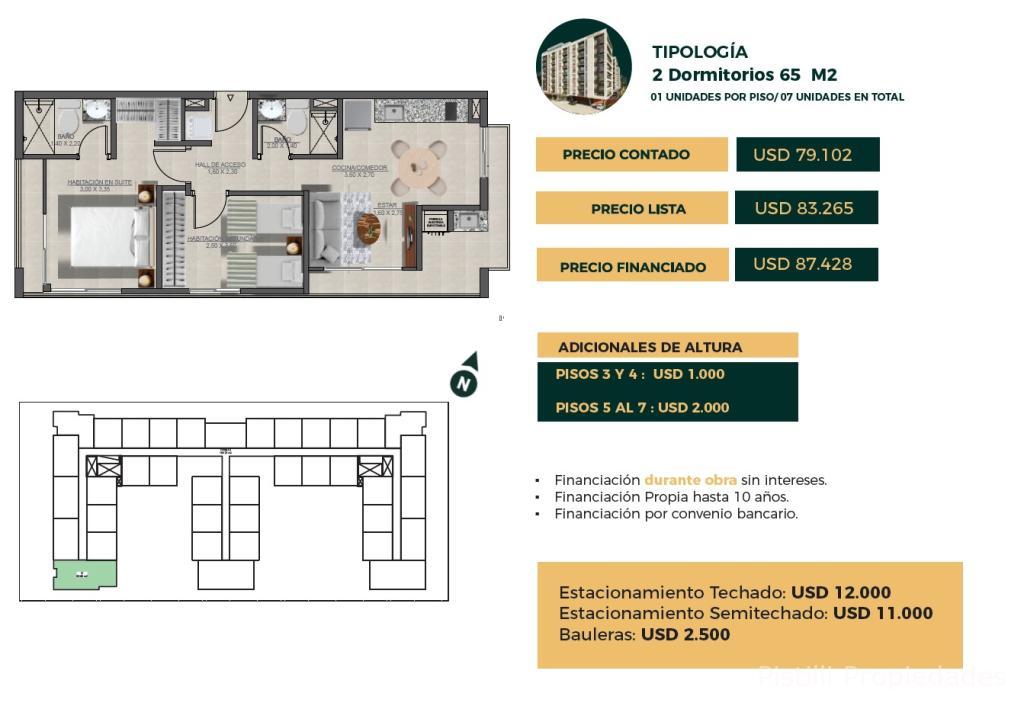 2 Dormitorios: 65 m² desde ➡ U$D. 79.102