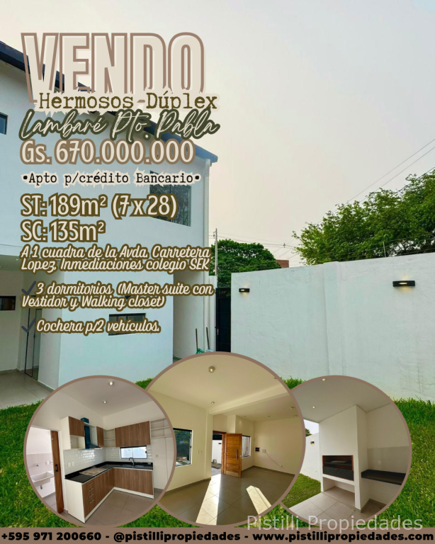 DUPLEX PREMIUM A ESTRENAR EN LAMBARÉ - ¡FINAS TERMINACIONES! UBICACIÓN INMEJORABLE: Zona central de Todo Rico. A solo 1 cuadra de la Avda. Carretera López. Inmediaciones del Colegio SEK. Puerto Pabla (Límite con Villa Elisa)