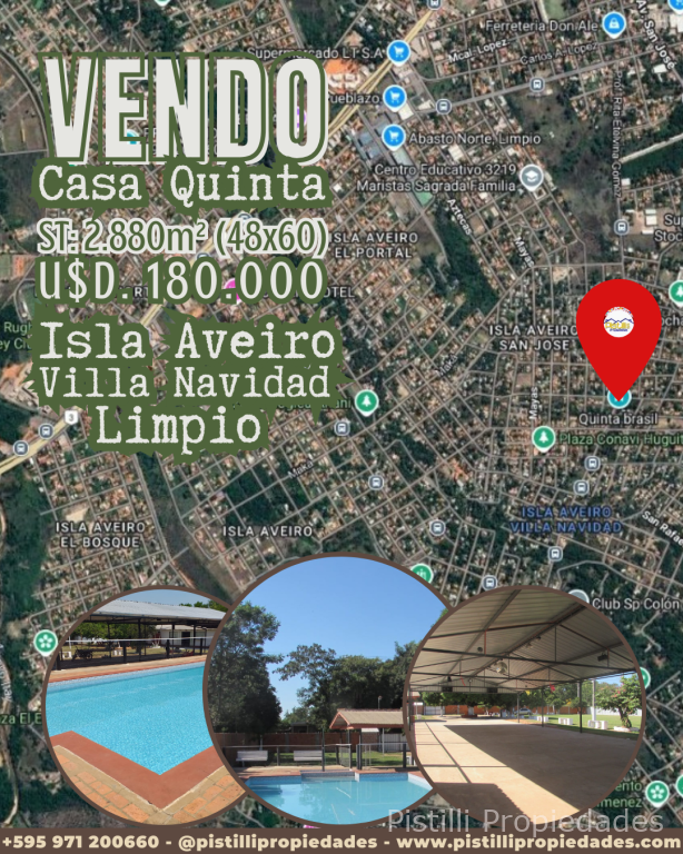 Descubrí tu paraíso personal en la tranquilidad de Limpio. Ponemos a la venta una magnífica casa quinta de 2.880 m² en el Barrio Isla Aveiro, conocido como Villa Navidad, una joya ubicada estratégicamente sobre la calle Prof. Rita Etelvina Gómez entre la Ruta 3 (General Aquino) y la Avda. San José.