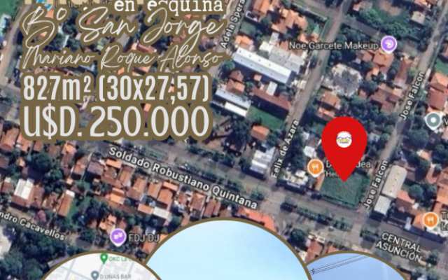 PROPIEDAD EN ESQUINA SOBRE ROBUSTIANO QUINTANA BARRIO SAN JORGE MARIANO ROQUE ALONSO ubicada sobre doble avenida, en esquina para cualquier tipo de desarrollo comercial, próximo a los puertos privados, en el límite de la ciudad de Asunción.